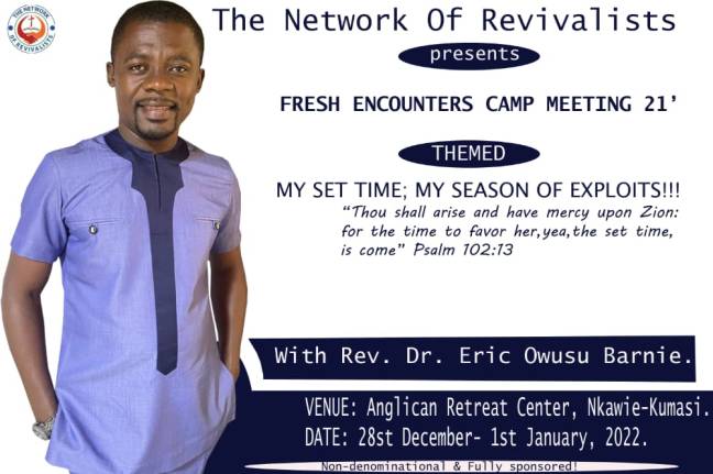 From December 28, 2021 to January 1, 2022, We held another glorious camp meeting at the Anglican Retreat Centre, Nkawie under the theme ''My Set Time, My Season of Exploits". Contrary to the global pandemic waves and economic crises, participants wee refreshed in God with renewed hope to believe God for the best in spite … Continue reading DECEMBER 2021 CAMP MEETING